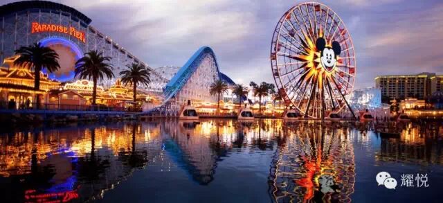 迪士尼把动画片所运用的色彩、刺激、魔幻等表现手法与游乐园的功能相结合,1955年推出了世界上第一个现代意义上的主题公园--洛杉矶迪士尼乐园!而后,迪士尼加州冒险乐园于2001年开放。
